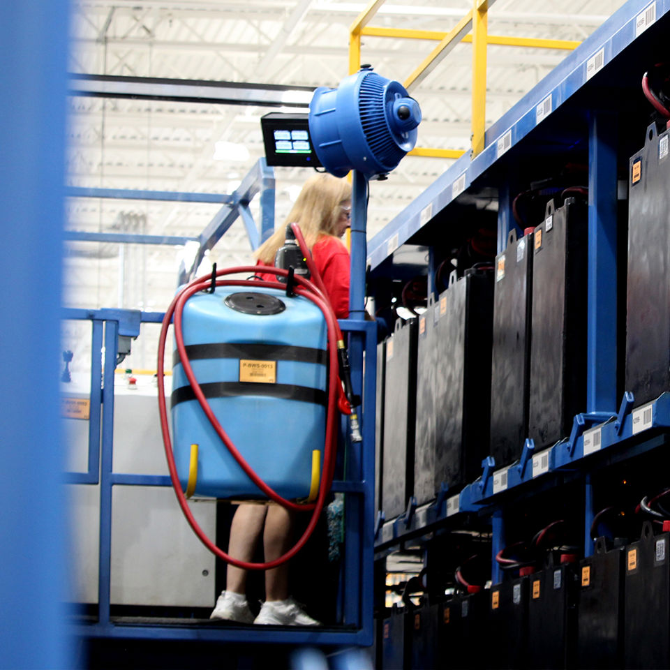 Our battery watering carts put an end to the struggle. Lightweight, mobile, and easy to maneuver, they bring deionized water right where you need it, so you can fill your entire fleet quickly and efficiently.