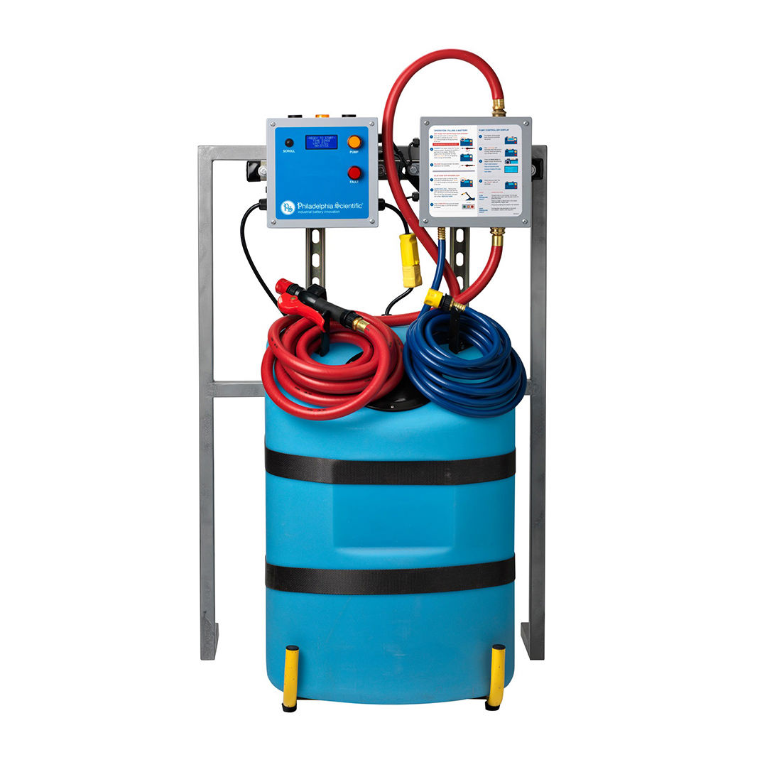The pump controller has been developed specifically to enhance warehouse and DC battery maintenance programs when used in conjunction with Philadelphia Scientific Water Injector Systems. The controller monitors the output pressure to ensure that the correct water pressure is supplied to the battery watering systems at all times.