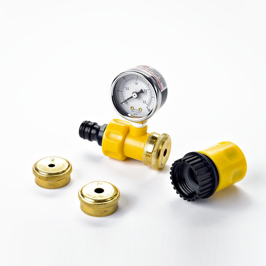 The Flow Checker gauge is one of the most critical tools in the service technician's toolbox. It is essential when installing a DirectFill, and can be a necessary aid in troubleshooting Injector Water Supply problems. It makes it fast and easy to determine if adequate dynamic flow pressure is available for the Water Injector System.